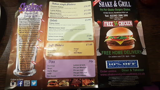 Inside, the decor is contemporary and clean, with seating suitable for small groups or quick dine-in visits. Although many customers choose takeaway—especially those browsing for options like the Shake and Grill Portsmouth menu or Shake and Grill Havant menu—the space is comfortable enough for enjoying a relaxed, satisfying meal on site. The restaurant’s location on Elm Grove also makes it incredibly convenient for passers-by and evening visitors exploring Southsea’s lively dining streets.
